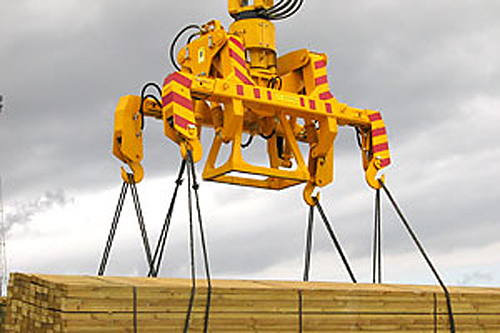 This type of spreaders can be used especially for handling timber packages. But also for handling plywood-, chipboard-packages and Big Bags and horizontally paper reels.